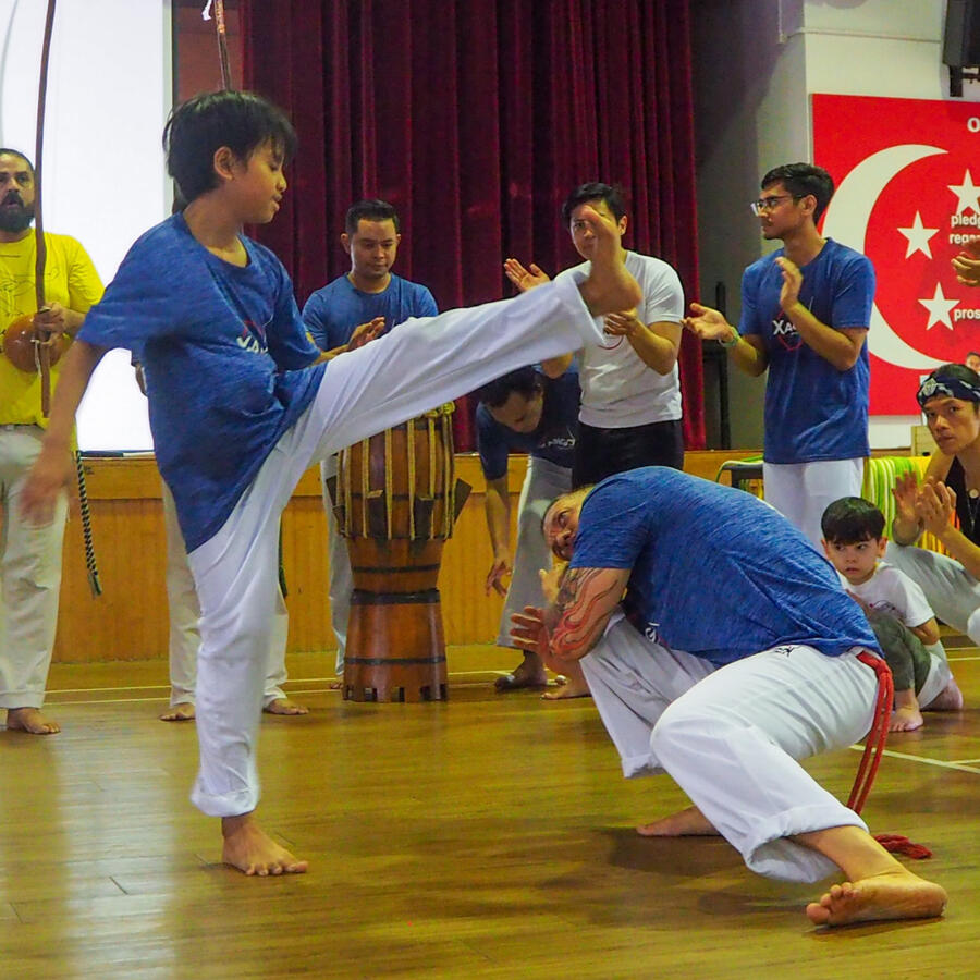 Capoeira is an Afro-Brazilian martial art that combines self-defence techniques, music, dance, and acrobatics. Its history is rooted in the traditions of enslaved Africans in colonial Brazil and was practised as a means of breaking the bonds of slavery.Xango Capoeira Singapore was founded in 2011 by Mestre Luizinho Barravento. We aim to promote individual and community values based on Respect, Cooperation, and Freedom through the Afro-Brazilian martial art and culture of capoeira.Our headquarters is in Gold Coast (Australia), with schools in Brisbane (Australia), Goiânia (Brazil), and France too. Our Singapore classes are taught by Instrutor Cantor and Graduado Manhoso.